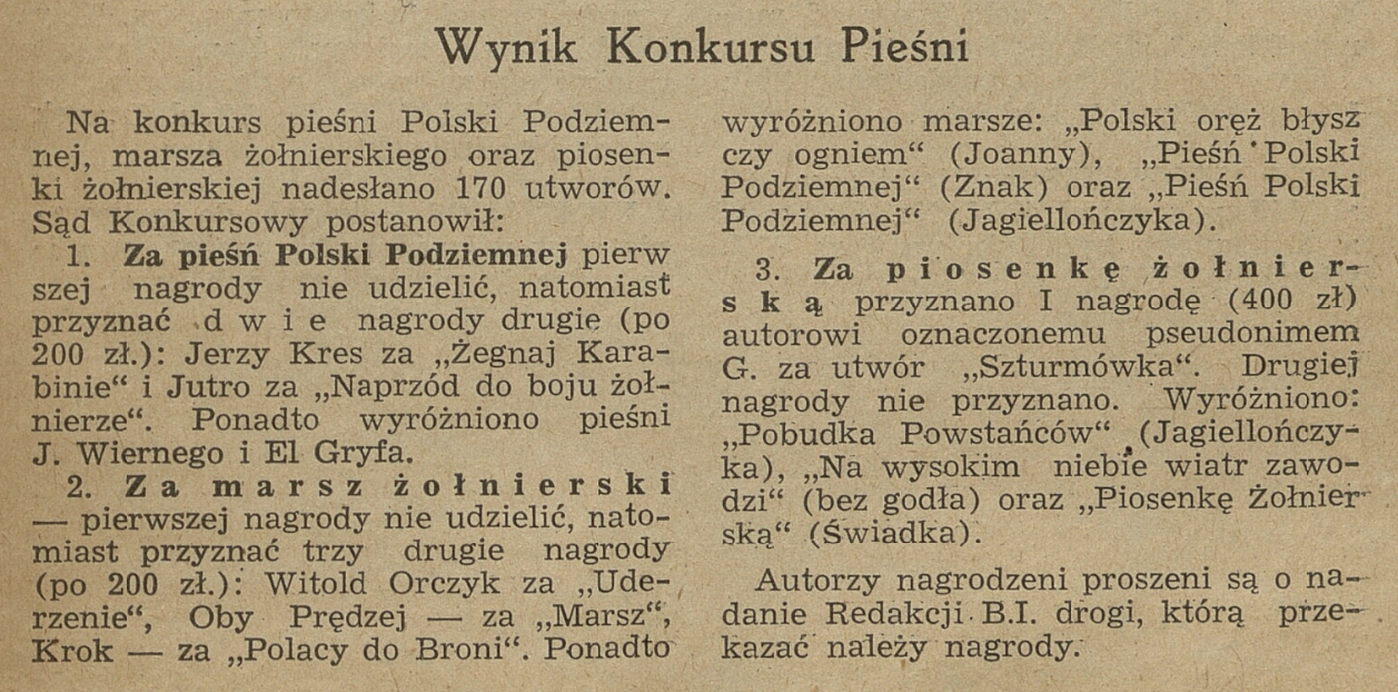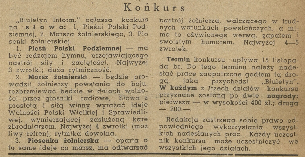 Ogłoszenie konkursu w „Biuletyn Informacyjny” - 15.10.1942 r.